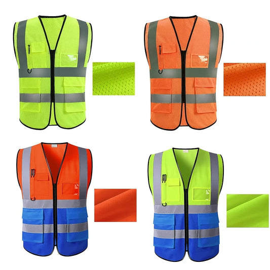 Unisex Summer Safety Vest Security Sleeveless Construction Workwear Zipper With Multi-Pockets For Running Cycling Work