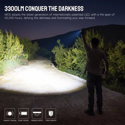 Trustfire MC5 High Power Led Flashlights 3300 Lumens Rechargeable Edc Magnetic Charging Use 21700 Battery Power Indicator Torchs